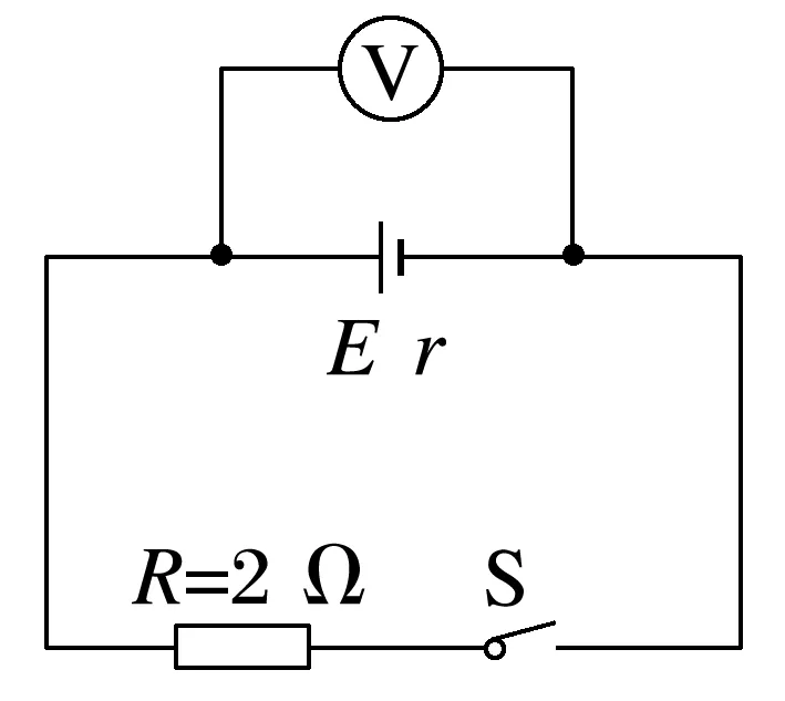 7.(2024·广东省六校联盟高二联考)如图所示的电路中,电阻R=2 Ω。断开S后,理想电压表的读数为1.5 V;闭合S后,理想电压表的读数为1.2 V,则电源的内阻r为( )