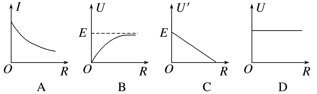 10.(多选)在如图所示的电路中,电源电动势E和内阻r均为定值,当外电路电阻R发生变化时,电路中电流I、路端电压U、内电压U′都将随之发生变化。下列图像能正确表示其变化规律的是( )
