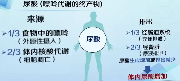 尿酸的产生主要分两种,其中内源性占大头,外源性只占30%,这也是为什么很多人管住嘴,尿酸还是降不下来的原因。