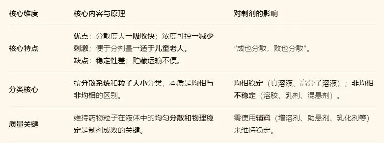 1.抓住“稳定性”主线:所有知识点都围绕着如何让药物在液体中稳定存在、均匀分散、顺利吸收展开。