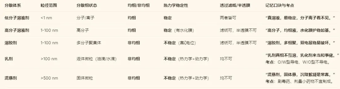二、 五大分散体系核心知识点(从稳定到不稳定)