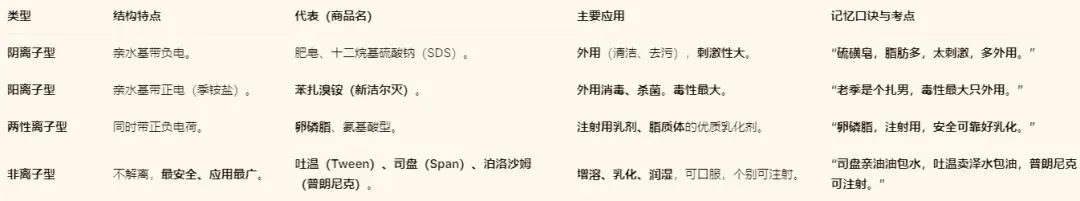 4.对比记忆易混概念:对比均相 vs 非均相、乳剂 vs 混悬剂、絮凝 vs 反絮凝、不同表面活性剂类型。