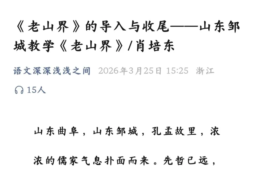 正备《老山界》,微信公众号“语文深深浅浅”推送肖培东老师在山东邹城教学《老山界》的课堂片段。篇幅不长,仅导入和收尾几个环节,但读下来,心里暗暗叫好。