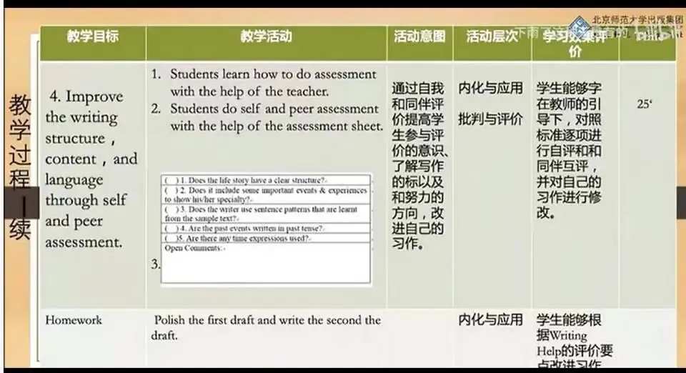 学生的互评:给别人评价的时候是对自己标准学习和内化的一个过程