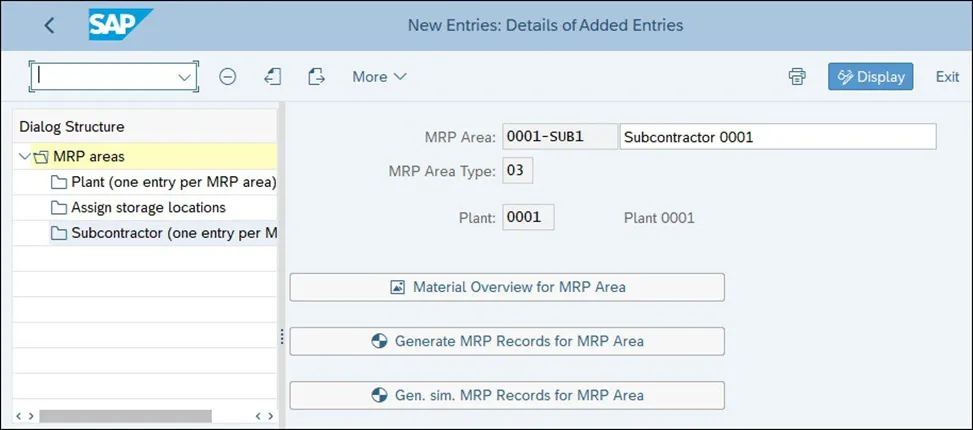 MRP区域配置文件可以在Define MRP Area Profile (定义MRP 区域参数文件)后台配置下创建,也可以直接在事务码OMIZC中创建。下图显示了MRP区域配置文件的创建,其中定义了在创建MRP区域时将使用MRP类型ND和MRP控制者ZCA。如果选中了Copy Field (复制字段)标志,则在工厂级别为物料定义的值将被复制到 MRP 区域。例如,如果某个特定的库存地点将始终从MRP 中排除。如使用下图所示的MRP区域配置文件,无论何时将物料扩展到MRP区域使用此配置文件的库存地点,将自动使用MRP类型ND创建物料的 MRP区域分配。如果要创建分包商MRP区域,则流程非常相似。主要区别在于,不会看到用于定义接收库存地点的字段,并且没有定义MRP区域配置文件的选项。还需要从左侧菜单中选择分包商选项,以便将供应商分配到分包MRP区域,如下图所示。如前(S4 HANA生产模块学习笔记-MRP 区域 1)所述,只能将一个分包供应商分配给分包MRP范围,并且每个供应商只能分配到一个MRP范围。下图显示了在定制中将分包供应商SUBCON_001分配到分包物料需求计划范围0001-SUB1的情况。虽然创建和传输一个库存地点MRP区域是一个非常简单的过程,但创建分包商MRP区域会涉及额外的复杂性,因为它取决于供应商的SAP编码。库存地点是配置数据,这意味着库存地点是被传输的,并且将在所有系统和客户端中使用相同的编号。但是,供应商编号是主数据,这意味着供应商编号在不同系统和客户端之间可能不同。如果将分包物料需求计划范围传输到其他系统,通常需要手动调整供应商编号。要调整生产系统中的设置,就需要打开这个配置事务码,通过将配置对象更改为当前设置来更改生产系统。此过程通常由系统管理员执行 SAP Note 317650 提供了有关它的更多信息。如果MRP区域尚未分配给任何物料,在定制中调整供应商编号后,调整会在应在MRP区域传输后立即生效。从SAP S/4 HANA 1909开始,SAP已经为库存地点和分包商MRP区域提供了单独的后台配置。事务码 OMIZA 将仅访问库存地点 MRP 区域,事务码 OMIZB 将仅访问分包商MRP 区域。默认情况下,自定义事务码OMIZB对于生产系统中的可修改是打开的,因此每当在系统中创建新供应商时,用户将能够创建新的MRP区域。除了在后台配置中创建新的MRP区域外,在某些情况下,也可能希望从后台中删除MRP区域。但是,只有当没有对MRP范围进行物料主分配时,才有可能这样做。如下图所示,有一个MRP区域的物料概览按钮可用,点击该按钮将打开分配给该特定MRP区域的所有物料的列表。如果需要删除MRP范围,可以使用此物料清单来检查需要删除MRP范围的哪些物料主分配。但是,在标准SAP S/4 HANA中,只能将物料主分配的删除标志设置为MRP区域。设置删除标志不足以允许删除MRP区域。要删除MRP区域,您需要从数据库表MDMA中物理删除分配。你若喜欢,点个❤️谢先👇