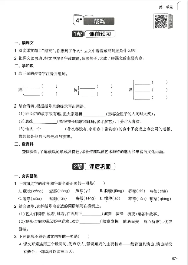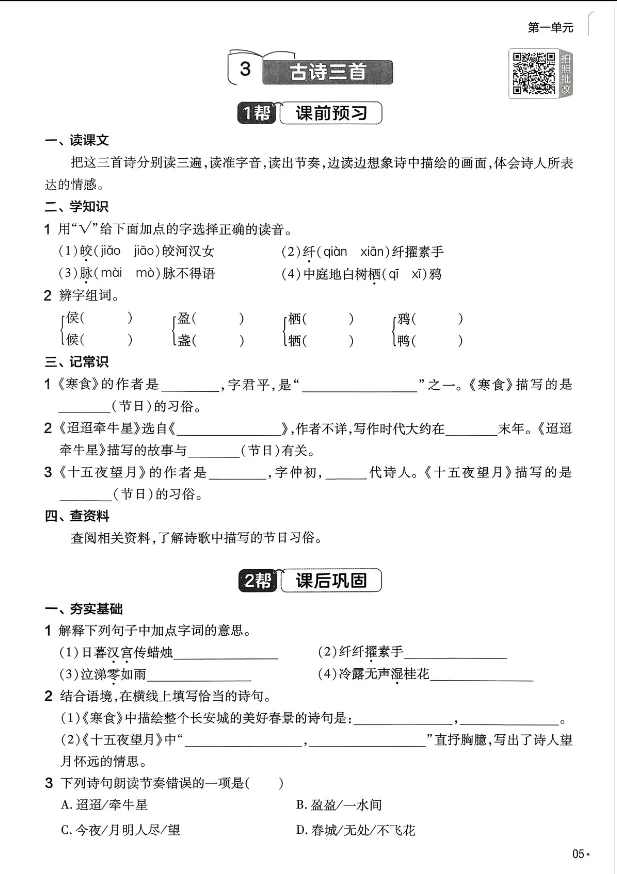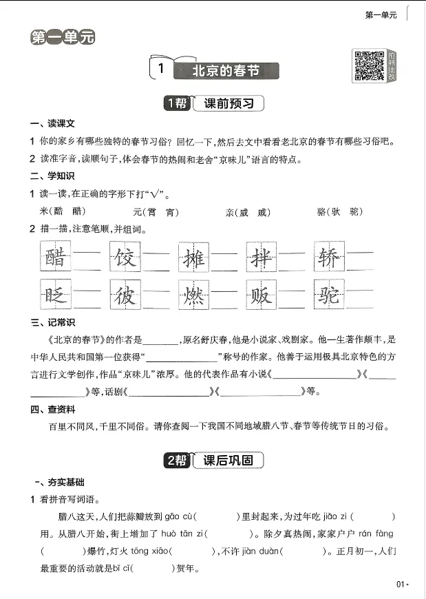 学习资料库 3-29【「6年级语文下册《课前预习+课后巩固》26春【共50页】】