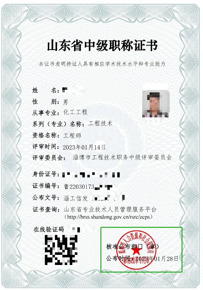 关键特征:证书上通常直接印有“化工”或相关细分专业字样。