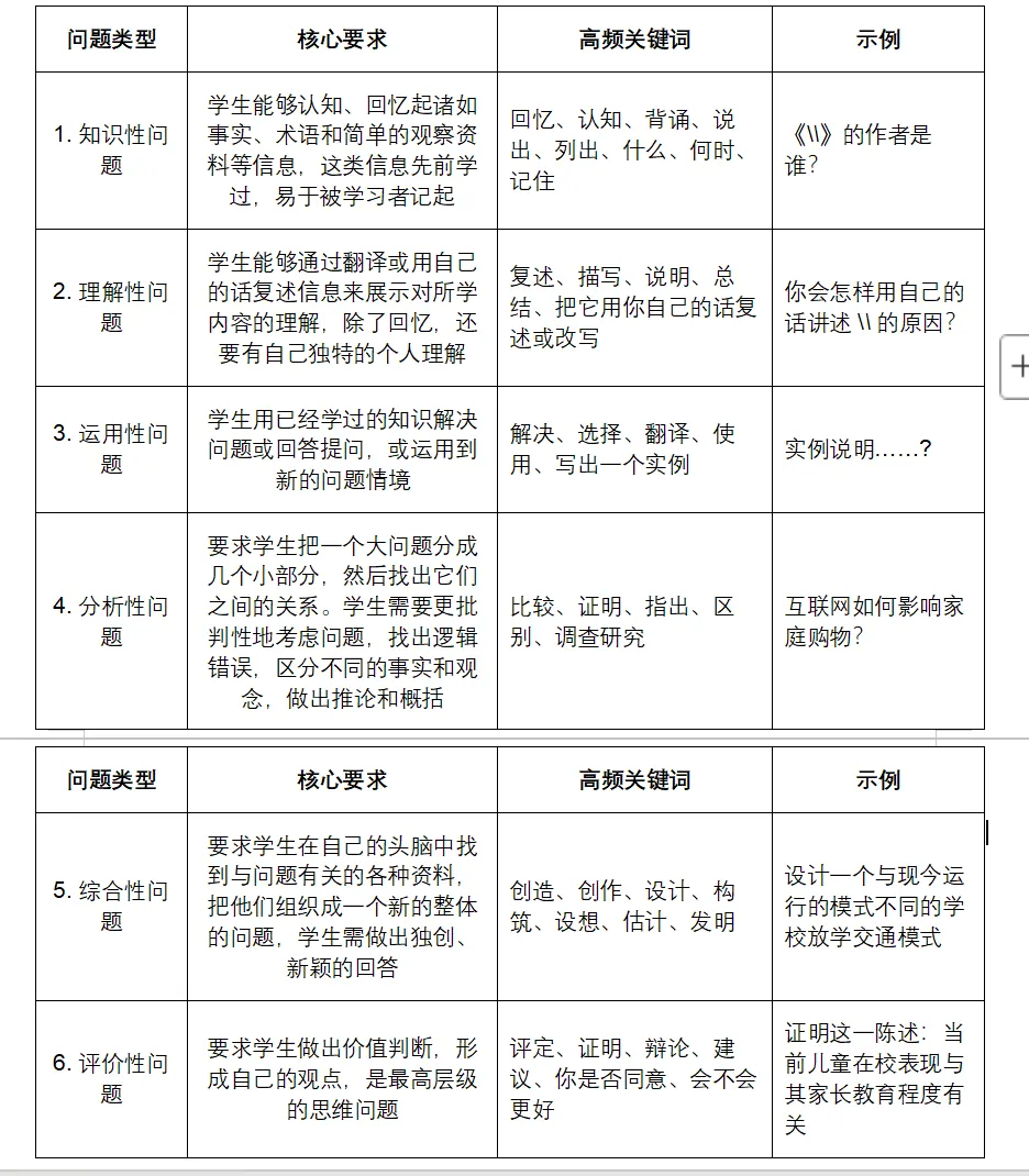 (三)课堂问题的分类体系