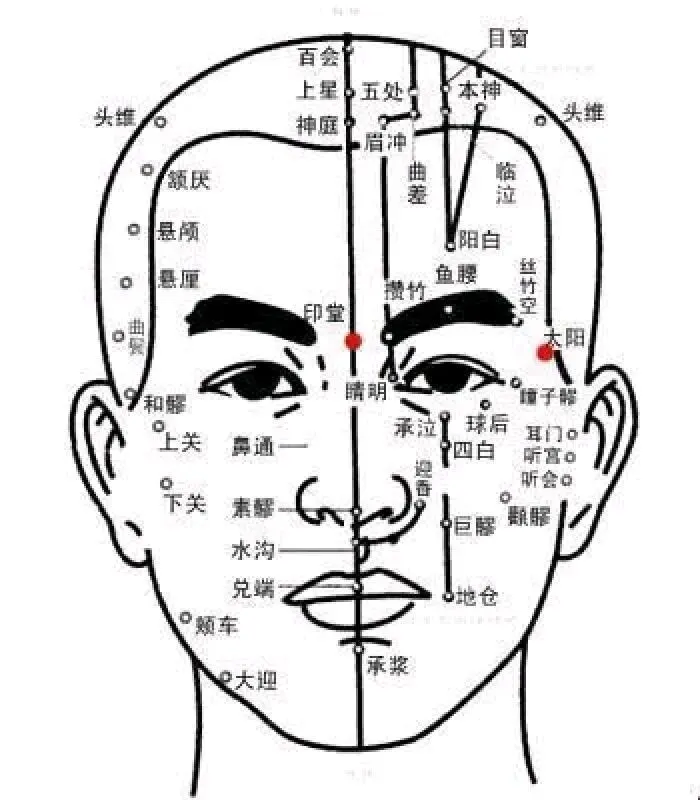 功效:促进额头及头部侧面气血运行,提亮面部肤色