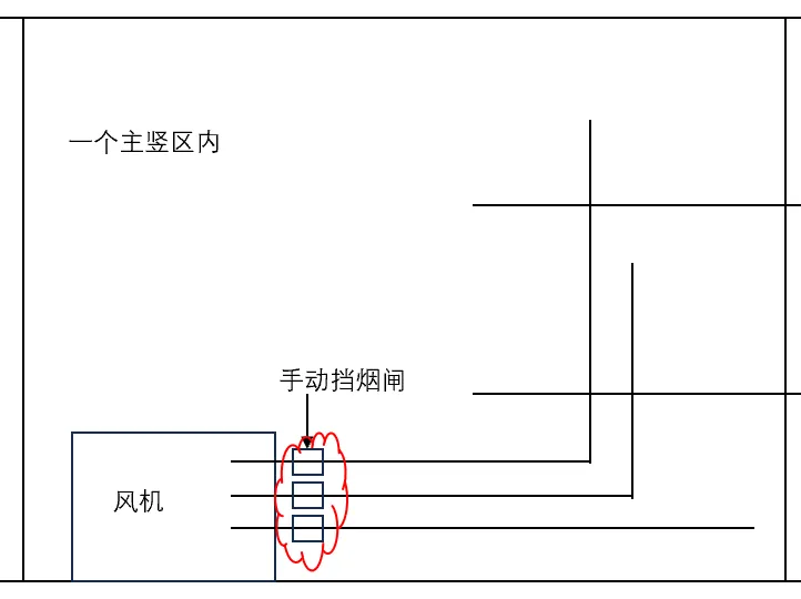 2.主竖区内分置导管:若在一个主竖区内,通风机通过“分开的导管”服务于多个甲板间处所(每个导管专门服务单个甲板间处所),则需在“每个导管靠近通风机处”,装设“手动操作的挡烟闸”。