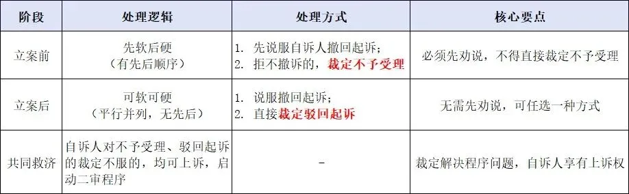 (2)法院审查:自愿、合法的,准许撤诉;受胁迫、非自愿的,不准许撤诉