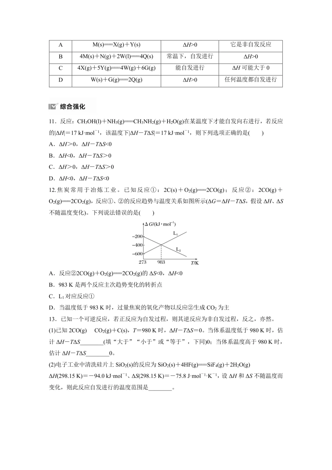当前位置:首页>学习笔记>【2026版步步高学习笔记练透高中化学选择性必修第一册苏教版word培优讲义专题2作业18化学反应的方向