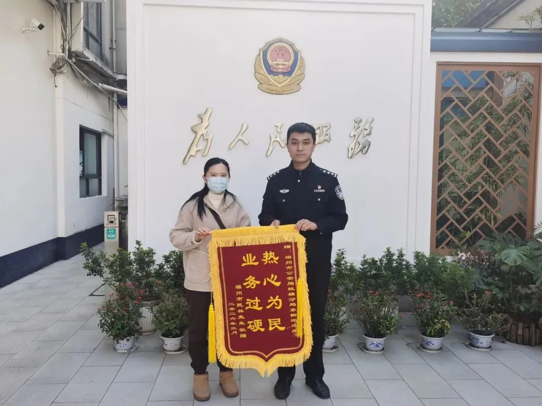 3月18日,中学生小林再三叮嘱母亲,将自己亲笔书写的感谢信和一面印着“热心为民 业务过硬”的锦旗,送到福州市公安局鼓楼分局东街派出所,以此感谢民警为他快速寻回遗失的手机,圆了孩子的“感恩心愿”。