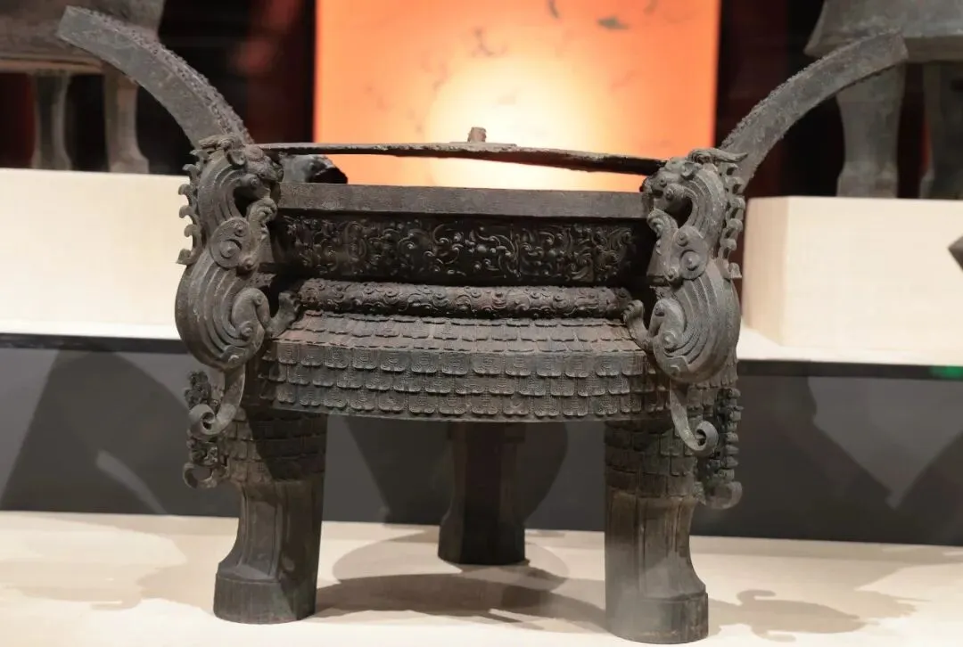 兽面耳饰的青铜瓮,讲解老师介绍是盛酒或盛汤羹。