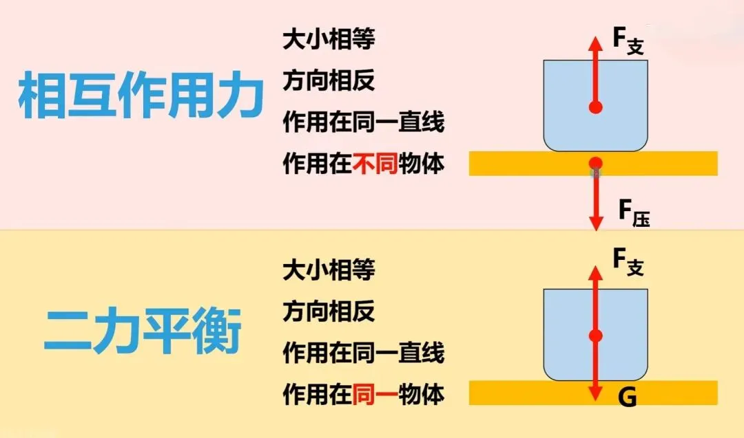 二者区别:平衡力是作用在同一个物体上,而相互作用力是作用在不同的物体上。