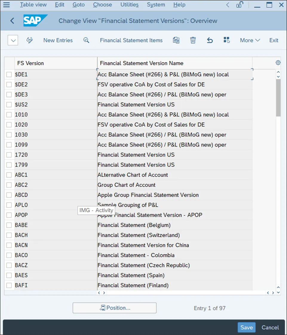 从提供的众多报告中,我们将关注最重要的几种:余额报表、财务报表、税务报告和展开报告。有几种标准报告可提供总账账户级别的各种资产负债信息。这些报告位于应用程序菜单中的“会计 • 财务会计 • 总账 • 信息系统 • 总账报告 • 账户余额”下。其中一些报告是通用的,许多是为特定国家提供的,以满足大多数国家层面的要求。不过,您也可以灵活配置余额报告,在显示余额时,每个分类账的这些报告特征可作为选择特征。按照菜单路径“财务会计 • 总账会计 • 信息系统 • 定义余额显示”操作。然后,从顶部菜单中选择“新条目”,为每个分类账最多指定五个特征,如下图所示。现在,配置您将使用的主要报告维度(例如利润中心和业务部门)是有意义的。为每个分类账配置所需的特征,并保存您的条目。财务报表是法律要求的财务报告,如资产负债表和损益表。它们在 SAP S/4HANA 中被配置为账户集合,按部分和行进行组织。这些设置在财务报表版本中维护。要配置财务报表版本,请按照菜单路径“财务会计 • 总账会计 • 主数据 • 总账账户 • 财务报表结构 • 定义财务报表版本”操作。系统会显示可用的财务报表版本,如下图所示。通常,每个国家都需要一个单独的财务报表版本。选择“$US2:美国财务报表版本”,并通过从顶部菜单中选择“复制为”来复制它以创建您的新财务报表版本。接下来,为新的财务报表版本命名并添加描述,然后将此版本映射到您的会计科目表,如下图所示。现在,从顶部菜单中选择“财务报表项目”,这将显示财务报表的结构,如下图所示。在这里,您可以定义财务报表的部分,如资产、负债和权益等。您可以将光标定位在某一行上,然后从顶部菜单中点击“展开子树”来展开每一行。通过这种方式,您可以深入到最底层的行,在那里您可以通过从顶部菜单中选择“分配账户”来分配账户。现在,您可以分配账户范围,如下图所示。选择复选框 D(代表借方)和/或 C(代表贷方),这会告诉系统包含借方和/或贷方余额。通过这种方式,您可以将账户分配到财务报表版本的所有行。你若喜欢,点个❤️谢先👇