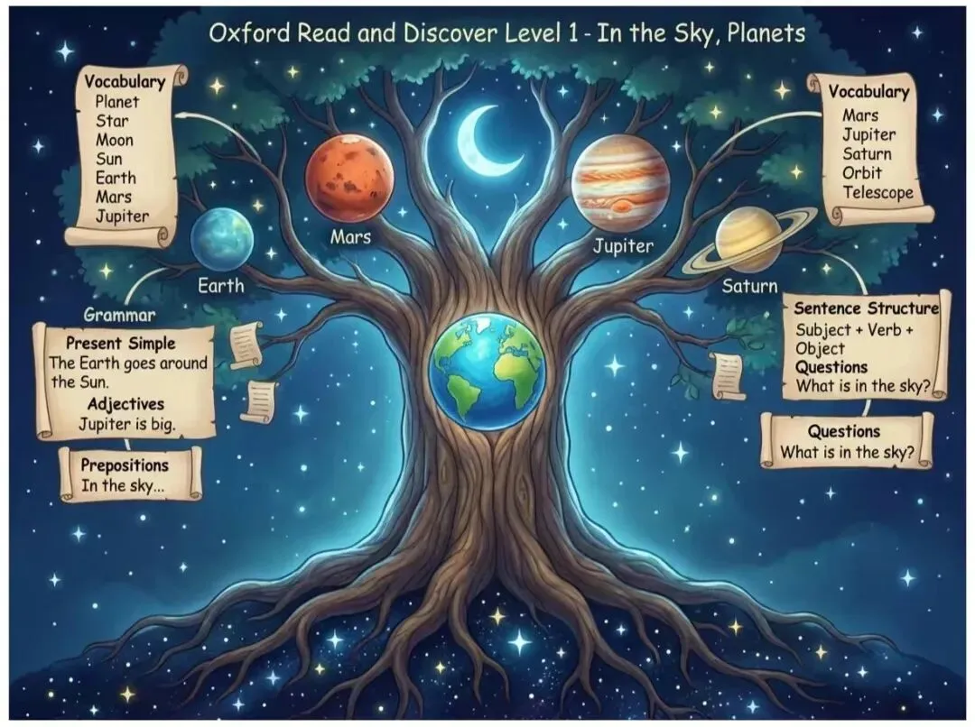 由于妞的power up 3有线上老师带着学,口语还行,所以最近坚持英文年级阅读,每日两页纸Oxford Read Discover,我想着自己带着妞精讲,这样语法写作等可以每日无痛的学习。首先用nana banana ai图片生成器注册,生成唯美的思维导图,这个是地址https://nana-banana.org/ai-image-generator。