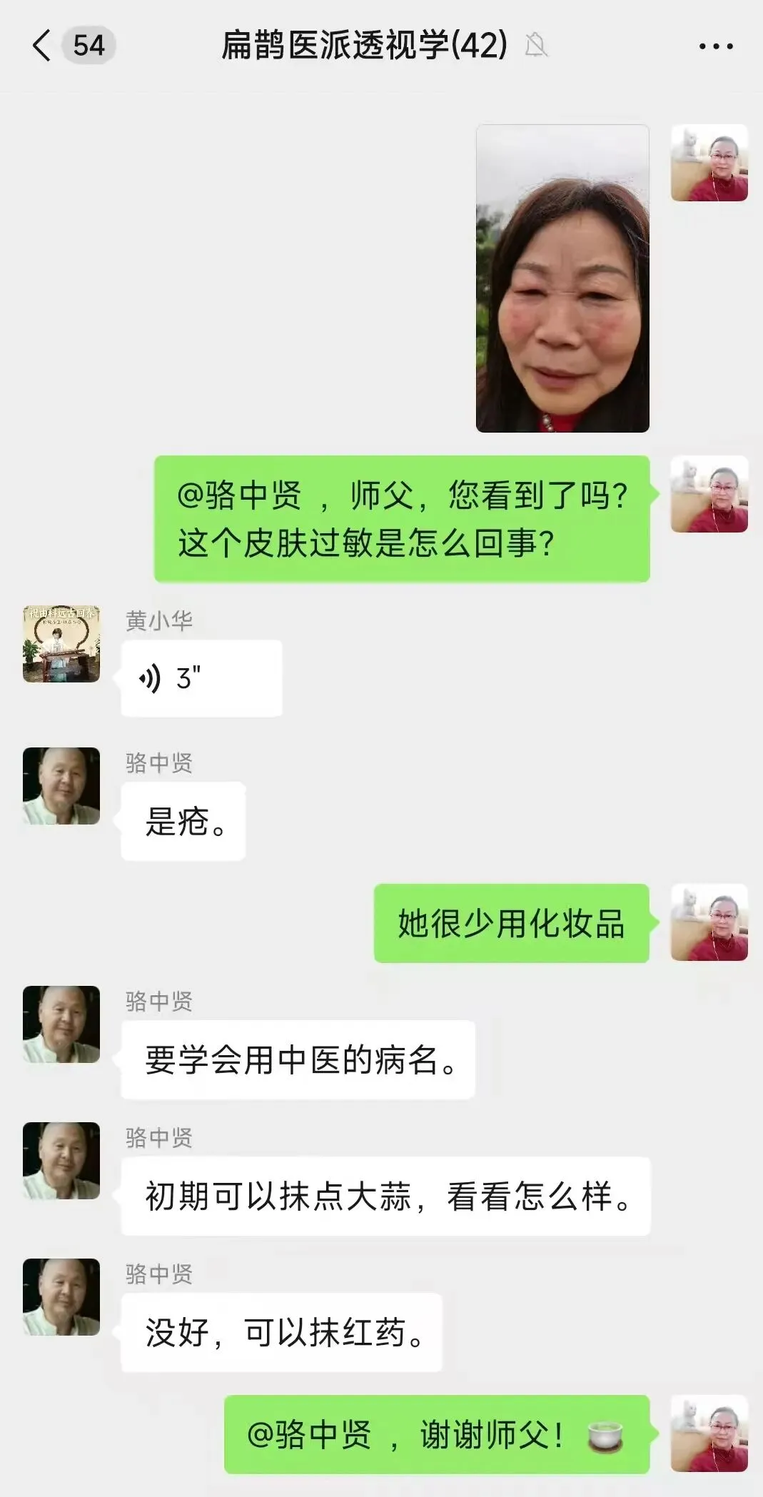 昨天遇到多年不见的堂嫂,脸上的红疮折磨得她很难受,于是我请教了师父: