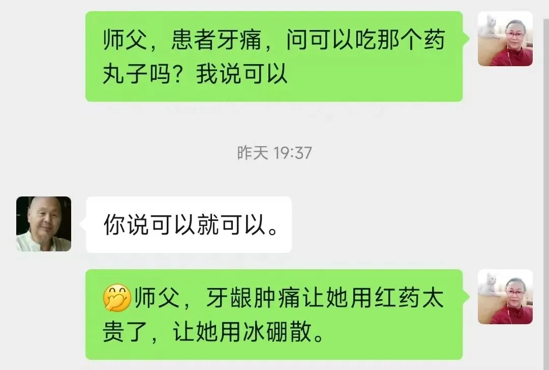 我出门在外地,患者因为牙痛联系我,我又请教了师父: