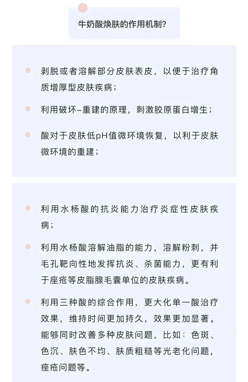 牛奶酸Milk Peel的成分是5%甘醇酸,4%水杨酸,9%乳酸从分成上看,这是种一复合酸!三种黄金比例搭配!