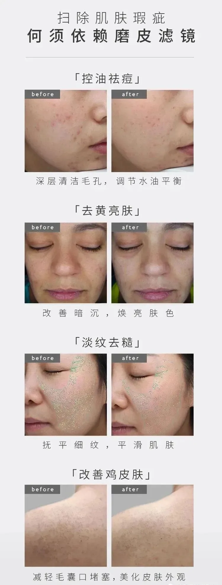 治疗痤疮:包括丘疹、粉刺、痘痘后浅表性瘢痕、痘痘后红斑等
