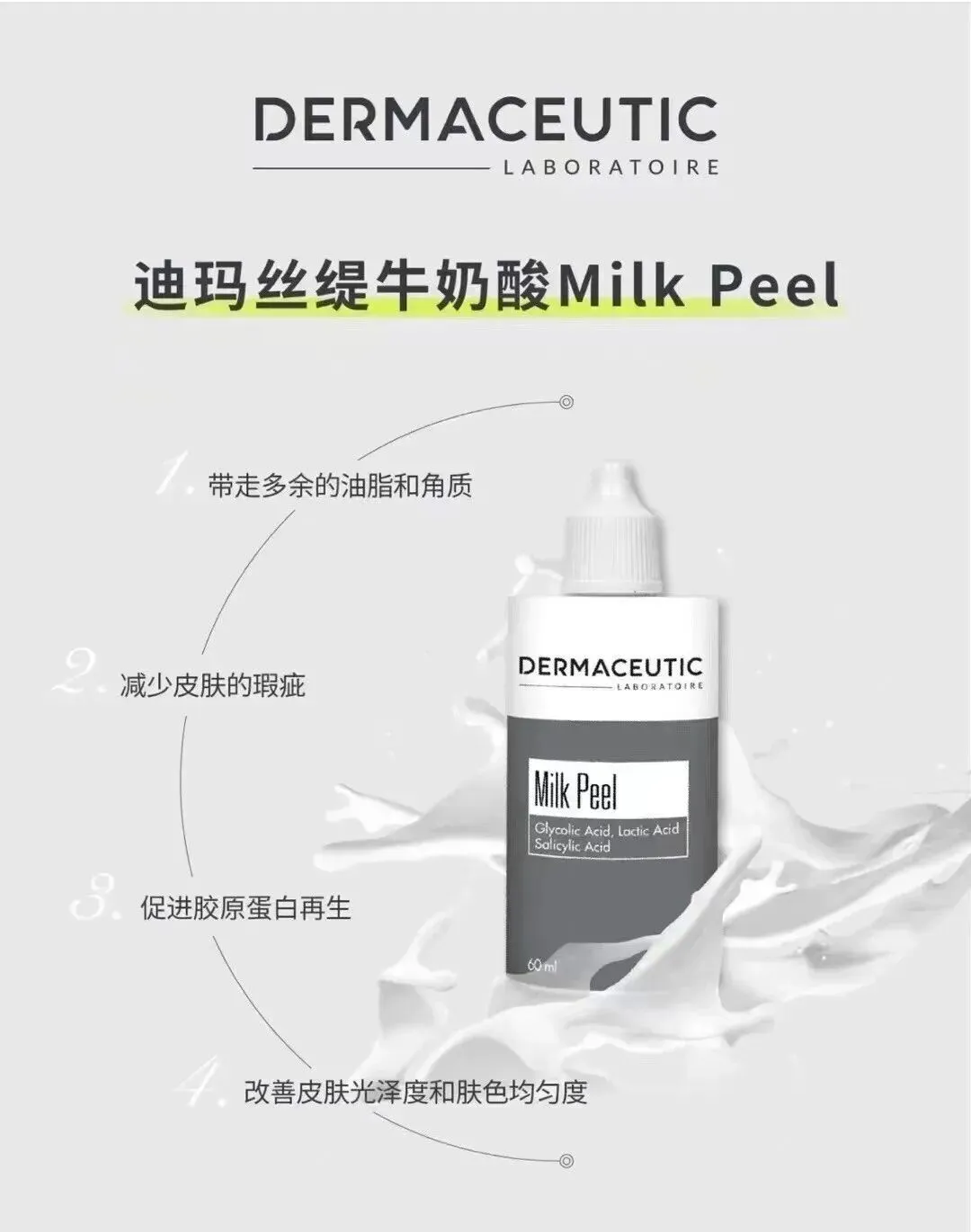 迪玛丝缇牛奶酸(Milk Peel),来源于法国,是皮肤医学博士Jean-Luc Vigneron和Jules Martha团队研发的明星产品,拥有将近20年的临床历史。