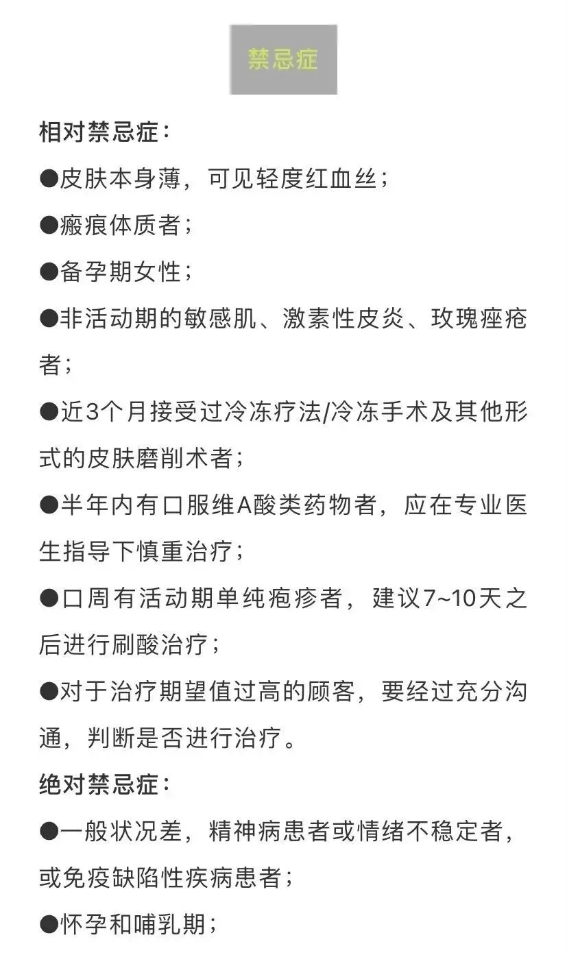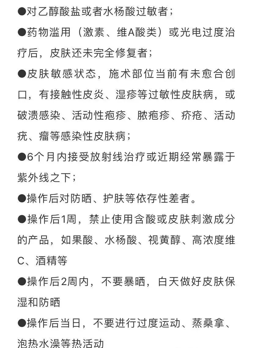 乙醇酸盐或者水杨酸过敏者不宜进行治疗