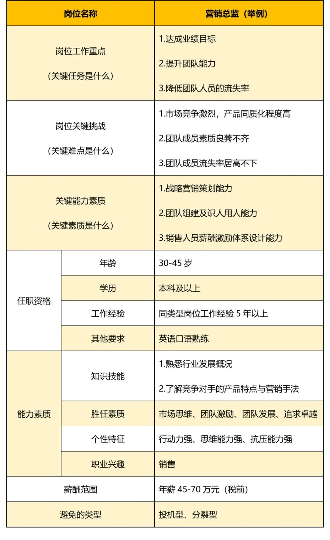 注:岗位的工作重点、关键挑战、能力素质部分要求面试官有一定的职场经验,并有较好的理解和领悟力,最终形成对该岗位的感性认识。