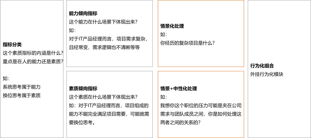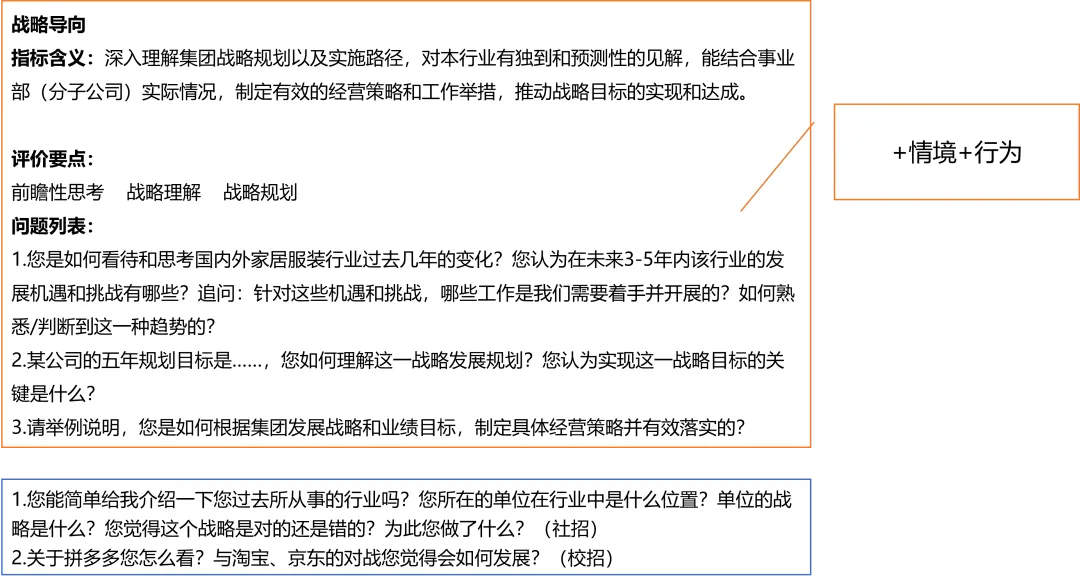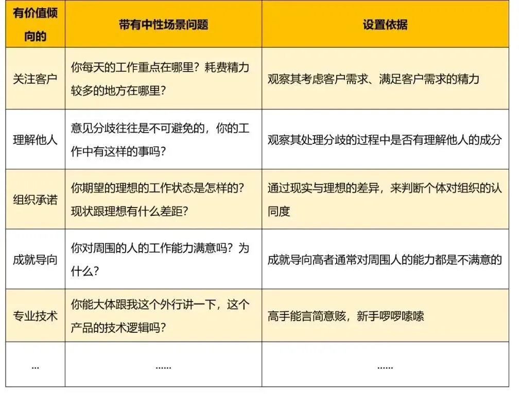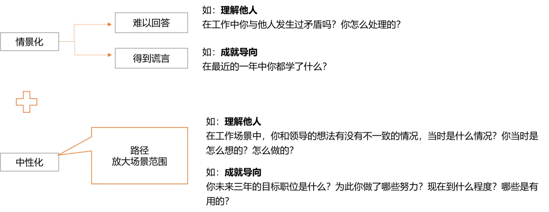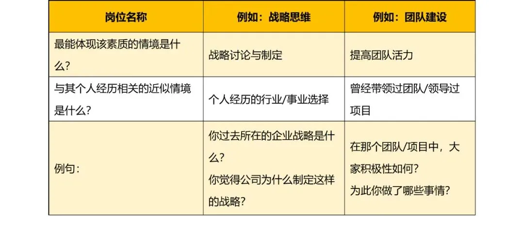 情景化+行为化:将素质指标放置在一个最能体现该素质的与个体经历相关的近似情境中,询问对方是怎么做的。