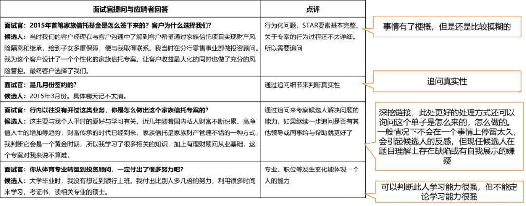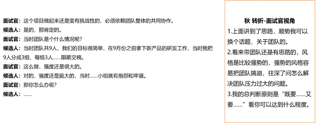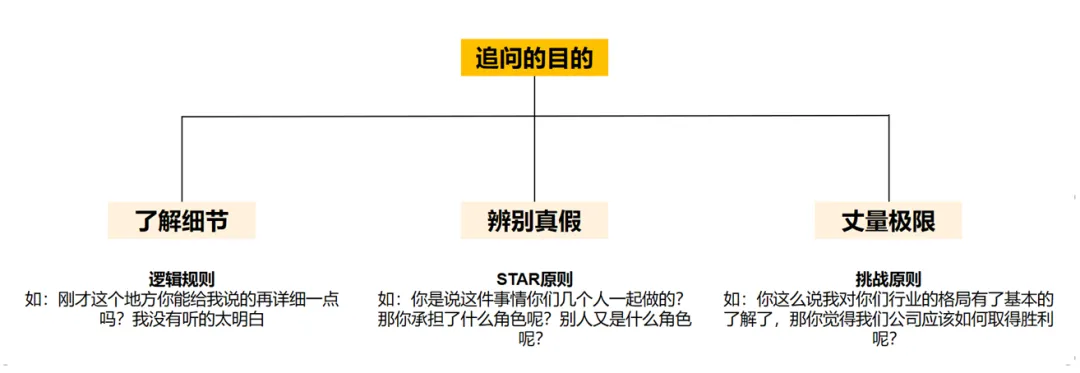 追问一般用来找到模糊点、挑战点,但是在对方明显不好回答的情况下,不要强行问下去。