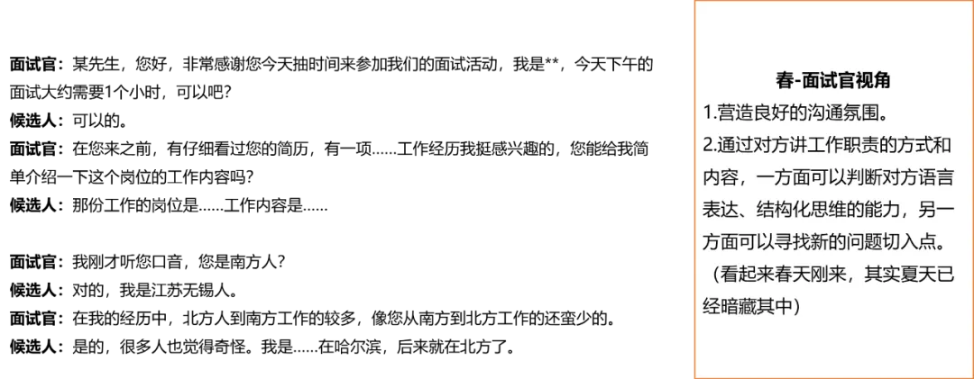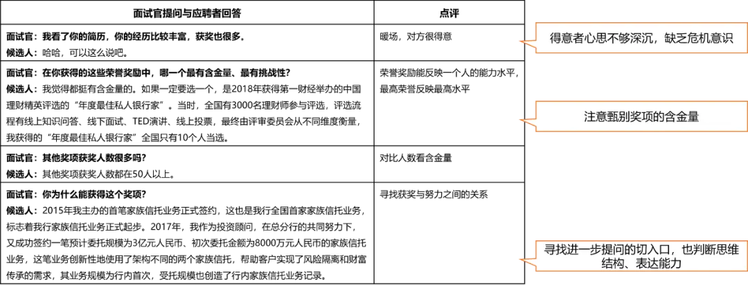 大神级面试的方法在形式上并不会太奇特,有时候会像一级面试样的唠家常,有时候会很像二级面试样的问事情但是其目的只是为了让对方暴露更多信息,尽管这些信息很多时候是不直接的。