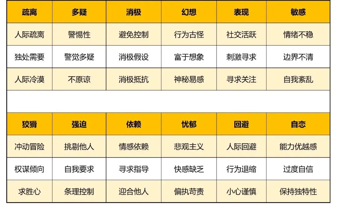 6)敏感:边缘型人格障碍,情绪状态或自我意象稳定性较差。