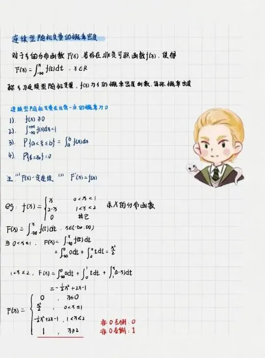 老师点评:徐源迪同学《概率统计》笔记设计简洁美观,书写工整大方,图文并茂,知识内容丰富充实,重难点标记清楚,归纳总结系统精炼,字里行间反映出作者学习刻苦努力,严密细致,透露着作者对数学的喜爱和对美的追求。