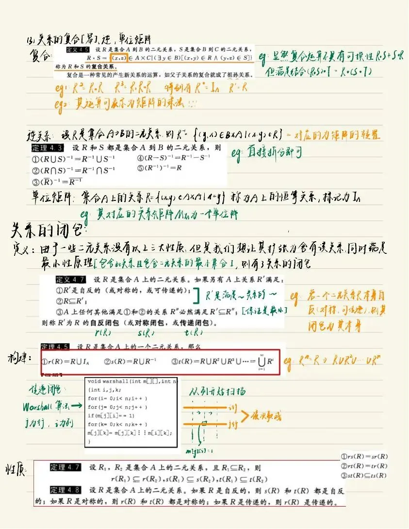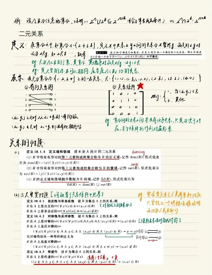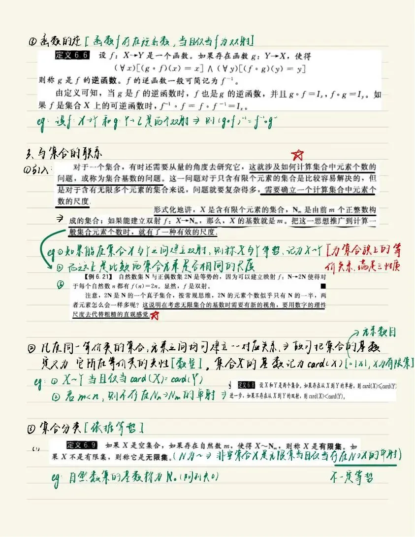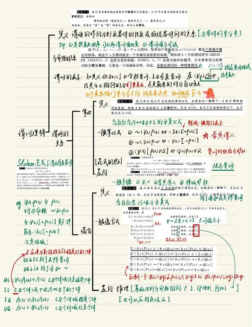 老师点评:周昊晨同学《离散数学》笔记形式整洁、内容明晰,很好地做到了“记录”与“整理”的结合。笔记对课程内容的知识点进行了系统化地组织,利用字色、标记等突出重点内容,通过示意图、例子等辅助阐述概念和性质,使用备注、标注等说明知识点的本质或容易出错的地方,这些都是值得借鉴的笔记方法。值得一提的是,这份笔记没有止步于“记录”,而是将自己对所学内容的思考结合到了笔记中,实现了对知识的系统整理,做到了“学而思”,值得推荐学习。