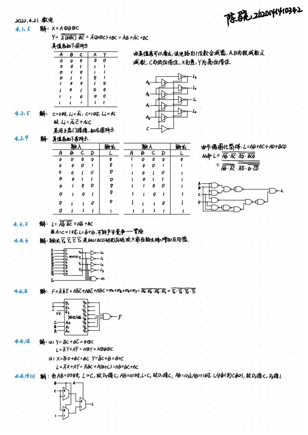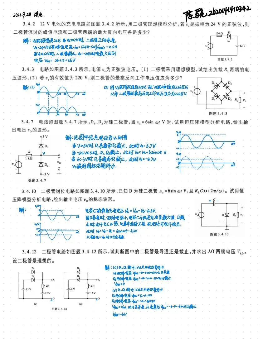 老师点评:陈骁同学的《数字技术》《模拟电子技术》《电工学》笔记,框架构图、图说笔记,化繁为简、充满逻辑。一个个元件构筑的电路图,都是“学而思之”的见证。推算不断、验证不停,一遍遍的重温复习,一次次的修改备注,认真与刻苦尽数展现在笔记之中。于公式中深入思考,箭头指引下明确方向,用这样的课堂笔记,为学习生涯打下坚实的基础。