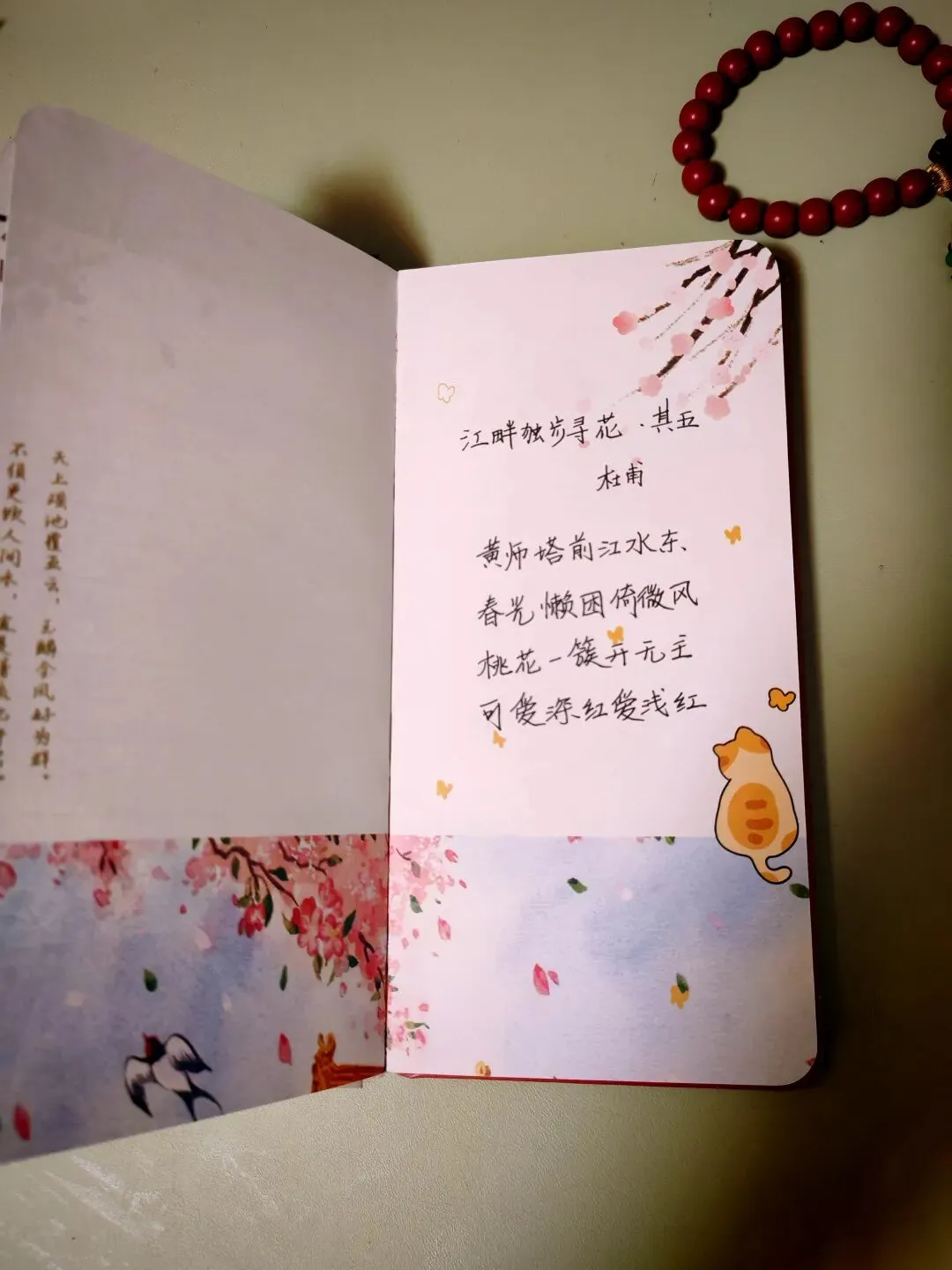 灯光漫过摊开的诗页,“寻得桃源好避秦”,古人也是懂逃离的。不必真的去寻桃花源,