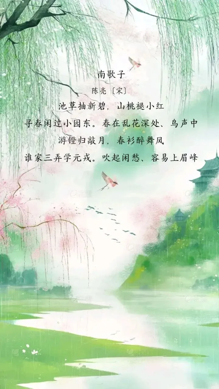 池草新碧,山桃轻红,春雨漫过红墙,吻过檐角的瓦当。马蹄踏碎乱花,惊起檐下的风,游灯归时,月色沾了春衫的醉意。三弄的清响,吹皱了眉间闲愁,让故乡的春,都落在这一纸墨香里,成了岁月里最温柔的念想。