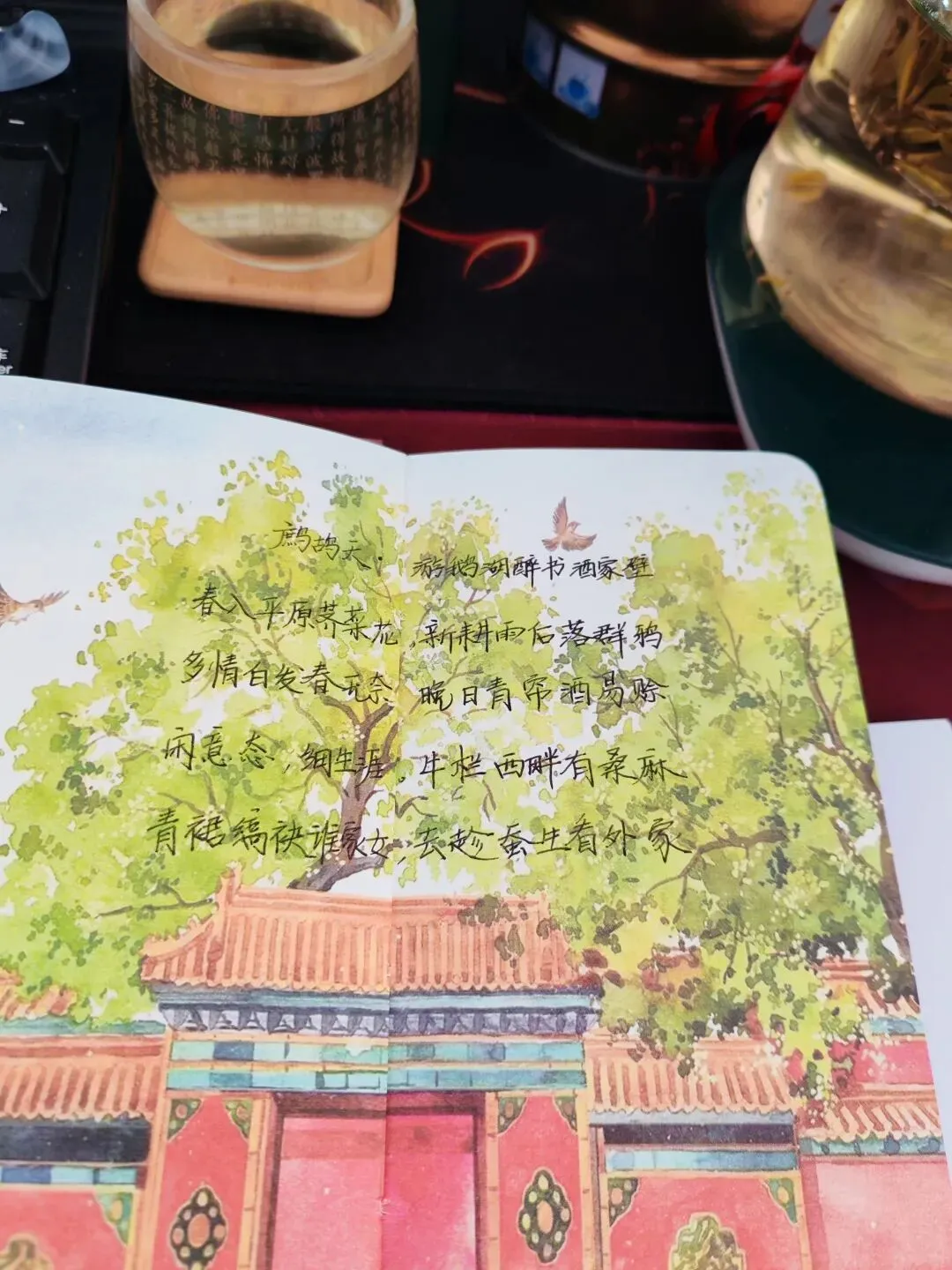 我在一杯清茶里,在一首鹧鸪天里,读着春天。看白发人醉卧书酒,听鹧鸪声漫过墙头。