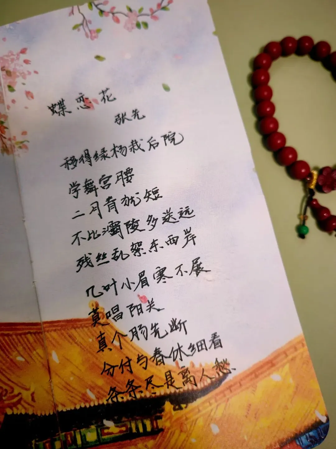 半卷宋词,一串红珠。莫唱阳关,怕这枝头的绿意,经不起离人的目光,万般风情,终化作满纸离人愁。
