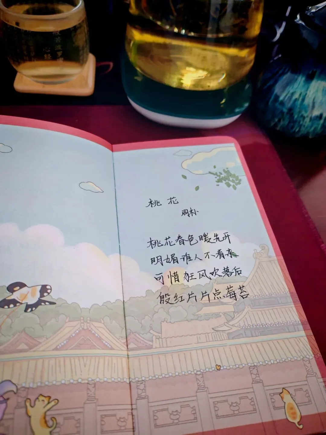 茶香袅袅,漫过写满桃花的纸页。窗外,风是急的,吹落了半树殷红;桌前,我是慢的,守着一杯温茶,看诗里的春慢慢谢去。不必惋惜,那些落去的花瓣,不过是换了一种方式,把春天的温柔,藏进了泥土里,获得重生。