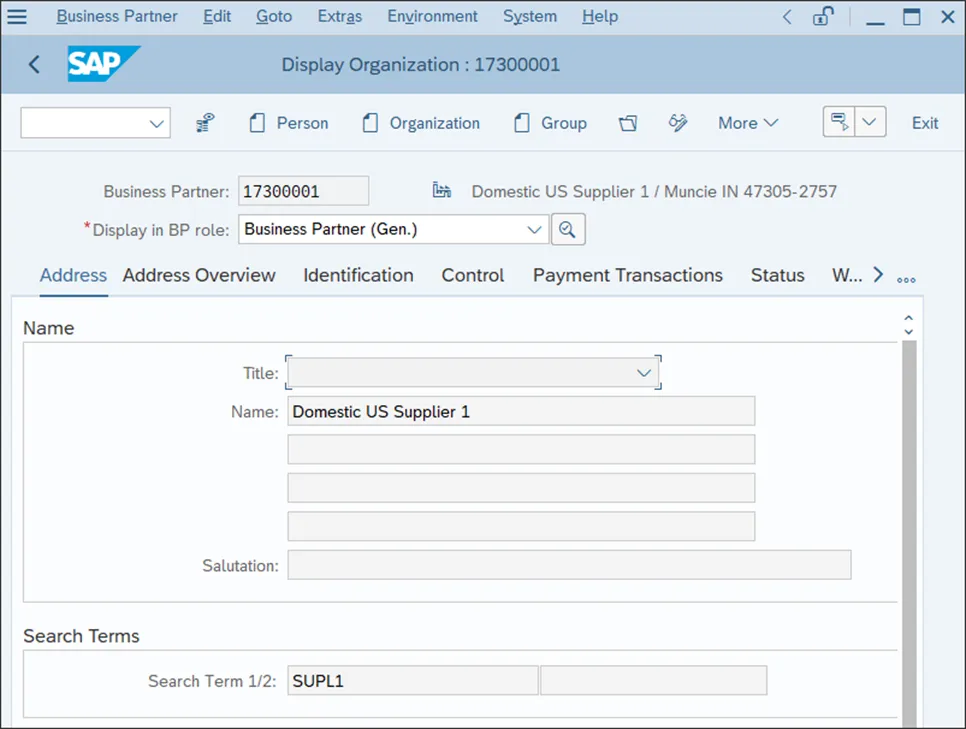 有一个单一的事务代码(事务代码 BP)可用于管理所有业务伙伴主数据流程,这使得以前用于供应商的创建/更改/显示事务代码(如事务代码 FK01/02/03、事务代码 XK01/02/03 等)过时。实际上,如果您执行这些事务代码之一来维护业务伙伴,系统将重定向到事务代码 BP。业务伙伴记录中供应商的财务数据分为通用数据和公司代码数据。让我们看看如何浏览业务伙伴主记录。输入事务代码 BP 以查看下图所示的屏幕。在这个屏幕上,使用右侧的下拉选项,您可以按各种角色搜索业务伙伴。从“按”下拉列表中,选择“供应商编号”以查看作为供应商维护的业务伙伴。删除“最大命中数”字段中的值 100,以便搜索不受限制,然后单击“开始”按钮。在结果列表中,双击任何供应商编号,这将带您进入该业务伙伴的通用数据,如下图所示。此数据对业务伙伴的所有伙伴功能均有效。它按标签组织,这些标签将相似的字段分组在一起,例如地址数据、控制、付款交易等。当您单击“以业务伙伴角色显示”下拉列表时,您将看到为该业务伙伴维护的角色。FI 供应商角色(财务会计供应商角色)包含供应商的财务数据,而“供应商”角色包含供应商的采购数据。现在,在“以业务伙伴角色显示”下拉列表中,选择 FI 供应商角色以查看与财务会计相关的标签,例如税务数据。您可以通过选择顶部菜单中的“在显示和更改之间切换”来更新字段。你若喜欢,点个❤️谢先👇