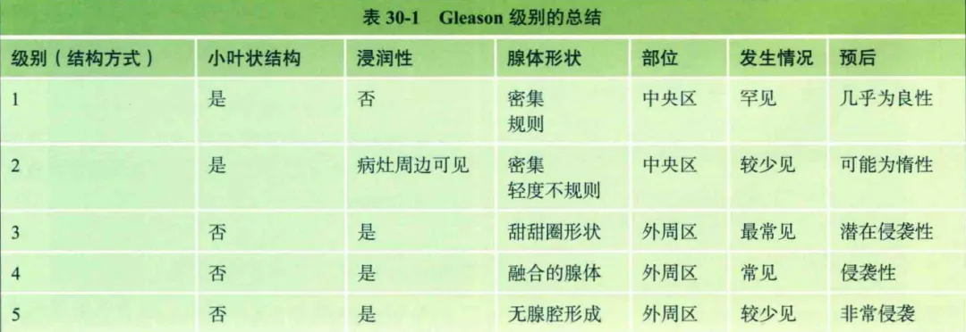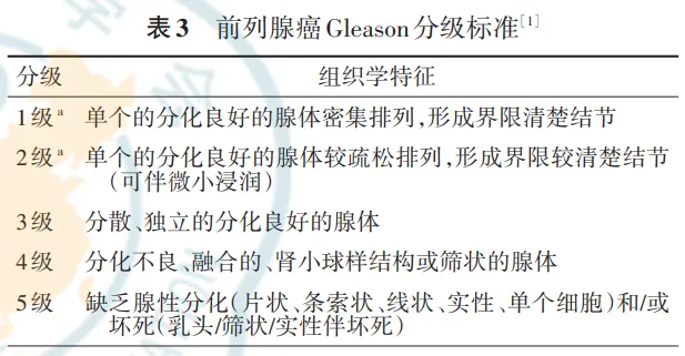 注意:经尿道前列腺切除标本的Gleason评分与穿刺活检标本的标准相同。