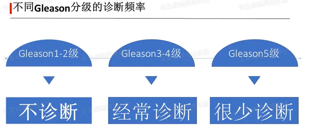 经尿道切除及根治标本中可以进行Gleason1、2级的诊断,但比例很少、罕见,很少诊断。