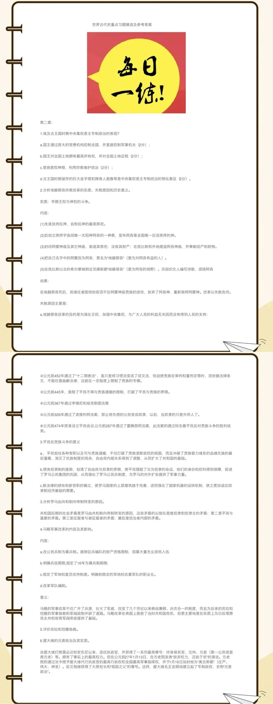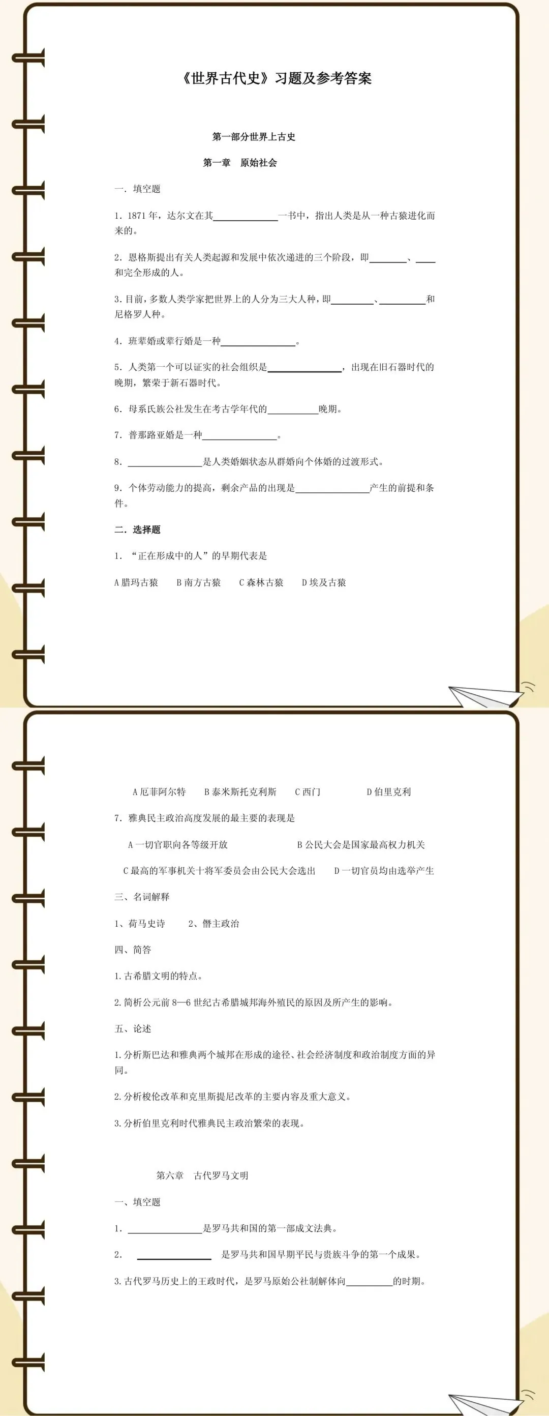 《世界古代史》学习笔记+知识点总结+习题集及答案+期末考试+复习资料,免费分享,双盘链接