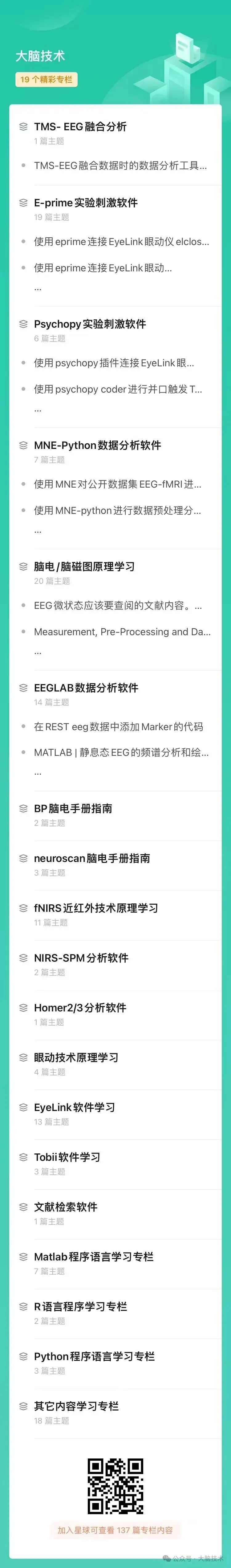 📚 知识宝库,触手可及社群沉淀多年,内含上百篇深度主题讨论、200+份精华技术文件,覆盖眼动、脑电、近红外、TMS、TDCS等前沿技术。这不是枯燥的教科书,而是经过检验的实操秘籍,让你轻松上手,掌握核心。
