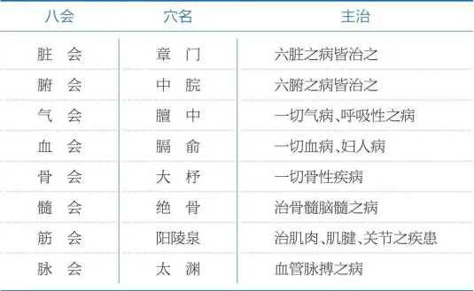 ·凡脏、腑、气、血、筋、骨、脉、髓八大类组织器官发生病变或有这些证候群时,可以主取会穴,再配他穴。
