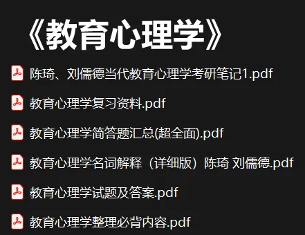 今天分享的资料是《教育心理学》学习笔记+知识点总结+名词解释+期末考试题及答案PDF电子版
