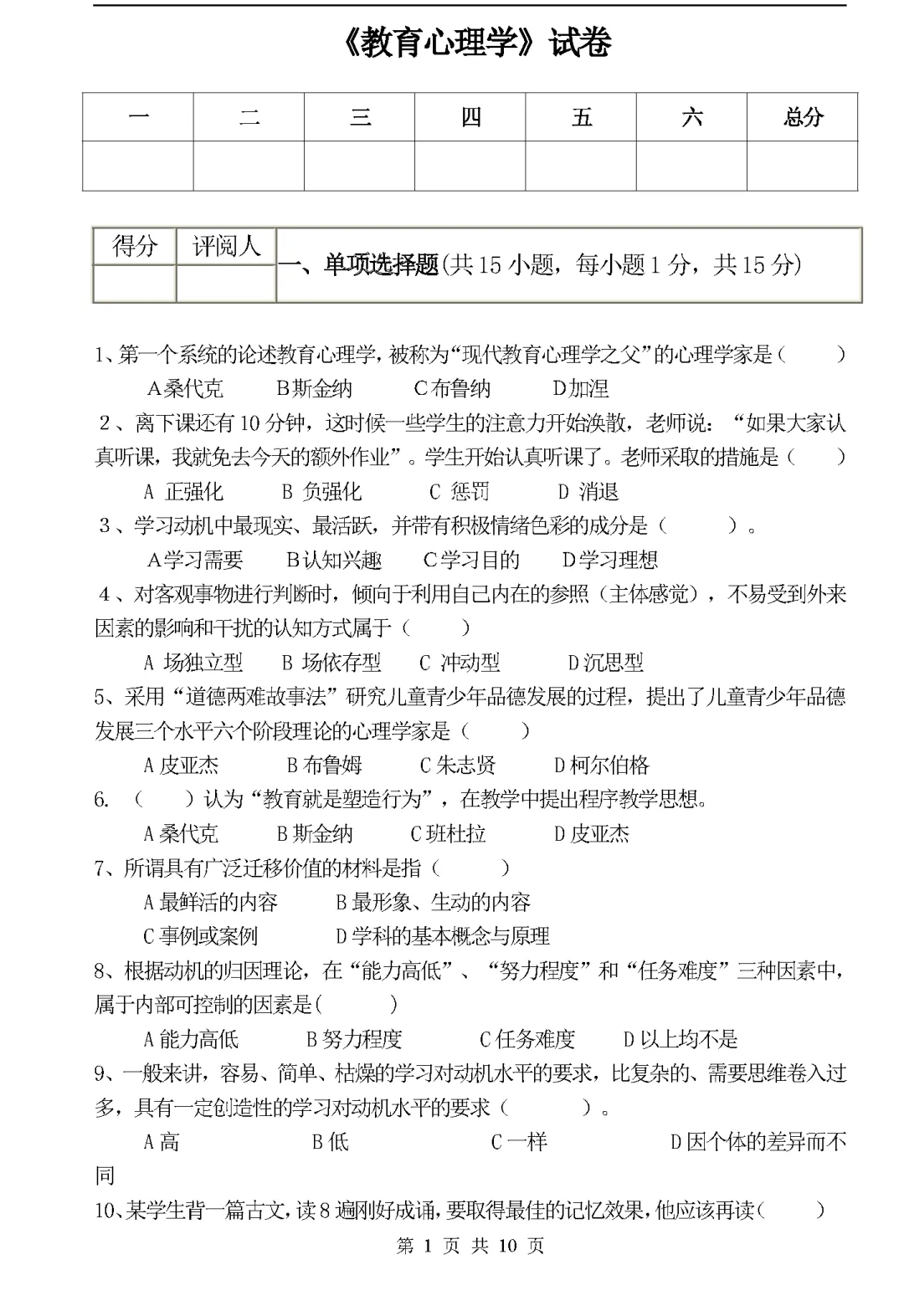 教育心理学试题及答案.pdf