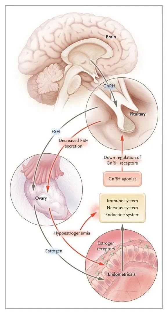 抑制HPO轴 → 减少雌激素