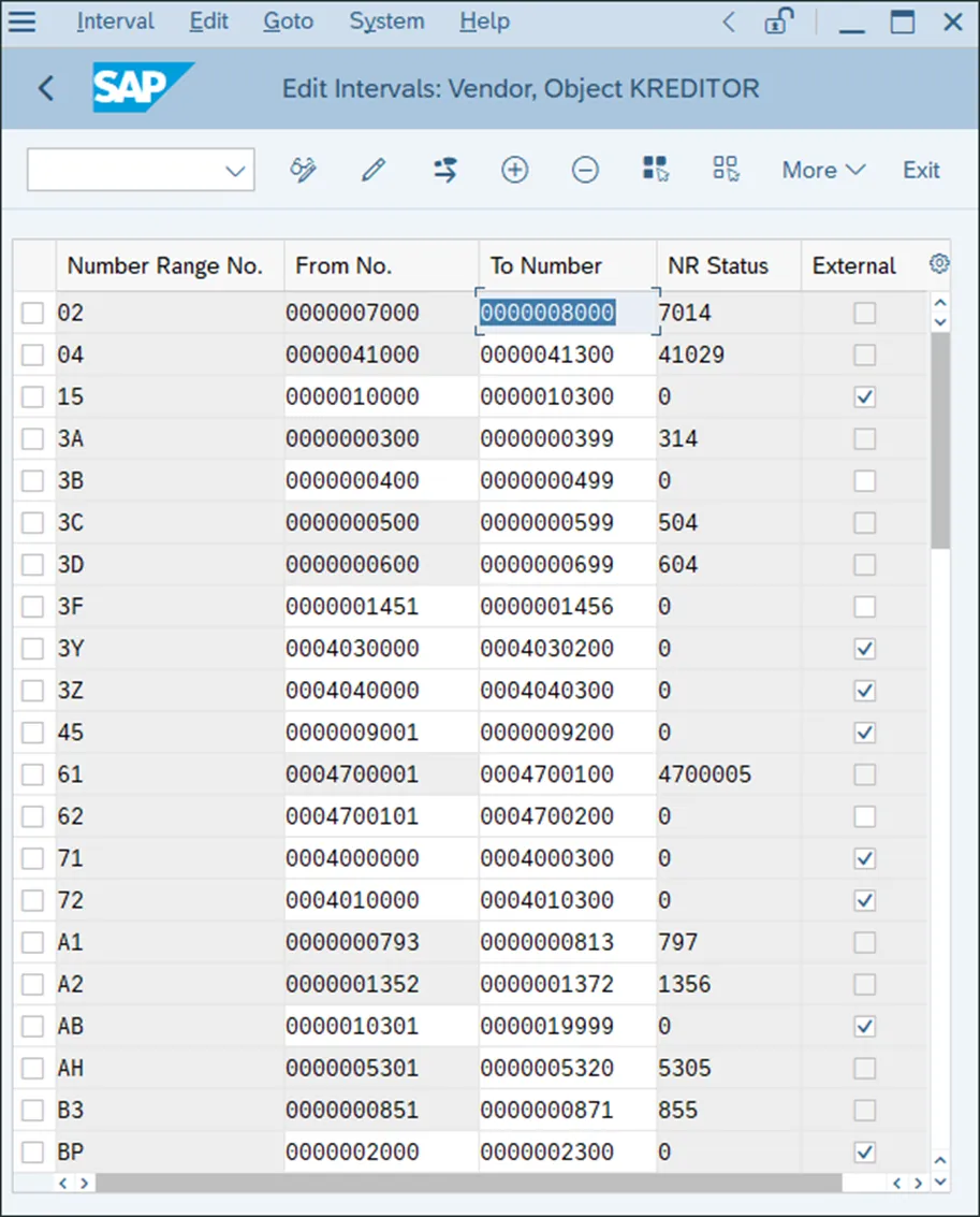 下一步是定义带有编号范围的供应商组。请按照菜单路径:财务会计 • 应收账款和应付账款 • 供应商账户 • 主数据 • 创建供应商主数据的准备工作 • 为供应商账户组分配编号范围。实际的编号范围通过以下菜单路径进行定义:财务会计 • 应收账款和应付账款 • 供应商账户 • 主数据 • 创建供应商主数据的准备工作 • 为供应商账户创建编号范围。如下图所示,编号范围对象是“KREDITOR”。点击“区间”按钮更改编号范围。在下图所示的屏幕上,您可以通过更改范围中“起始编号”和“结束编号”列中的数字来更改供应商编号范围背后的数字。下一步是配置客户 - 供应商集成(CVI)。CVI是一方的业务伙伴与另一方的供应商和客户之间的联系。首先,您必须通过以下菜单路径为业务伙伴配置同步控制:跨应用组件 • 主数据同步 • 同步控制 • 同步控制 • 在对话框中激活平台对象的PPO请求。如下图所示,通过选择“PPO激活(后处理激活)”复选框,确保同步对象“BP”在后处理中处于激活状态。现在,您需要通过以下菜单路径配置业务伙伴和供应商之间的联系:跨应用组件 • 主数据同步 • 客户/供应商集成 • 业务伙伴设置 • 供应商集成设置 • 设置从业务伙伴到供应商方向的BP角色类别。下图显示了与供应商相关的业务伙伴角色列表。双击“FLVN00”,这是财务会计供应商的业务伙伴角色。现在,在下图所示的屏幕上,确保选择“基于供应商”。此选择确保此业务伙伴角色必须有一个供应商。然后,当您处理此角色的业务伙伴时,系统会自动使用财务会计中的相关数据创建或更新供应商。下一步是通过以下菜单路径配置从供应商到业务伙伴的集成:跨应用组件 • 主数据同步 • 客户/供应商集成 • 业务伙伴设置 • 供应商集成设置 • 定义从供应商到BP方向的BP角色。在下图所示的屏幕上,您可以将供应商组与业务伙伴角色进行映射。从顶部菜单中选择“新条目”,并将相关供应商组与所需的业务伙伴角色关联起来。此步骤确保当您处理具有相关账户组的供应商时,系统将在分配给该供应商组的业务伙伴角色中创建或更新业务伙伴。你若喜欢,点个❤️谢先👇